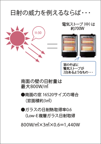 室内は涼しくても、夏の窓辺に立って「暑い」と感じたことはありませんか? 日射がもたらす熱量は、想像するよりもはるかに大きく、冬でも電気ストーブ2台分程といわれています。夏の猛暑日ならその威力はさらなるものに。太陽の恵みと上手に付き合って、快適な住まいを目指しましょう。