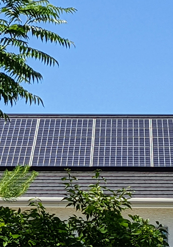 環境に配慮した太陽光発電のクリーンエネルギー。降り注ぐ太陽の光で発電し、CO2を排出しない太陽光発電システムを、脱炭素化に向けた次世代住宅への取り組みとして採用しています。