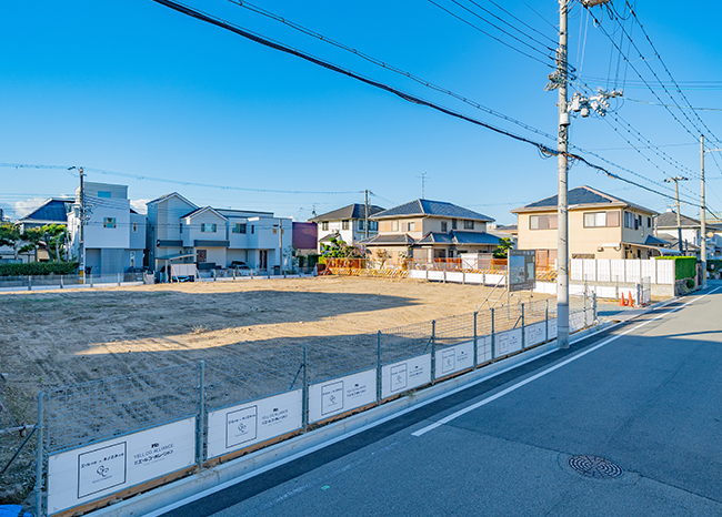 YELL CORPORATIONでは、まず分譲地を訪問し、土地の形状や周辺状況(隣接地との境界線のチェックなど)を確認する現地調査を行います。