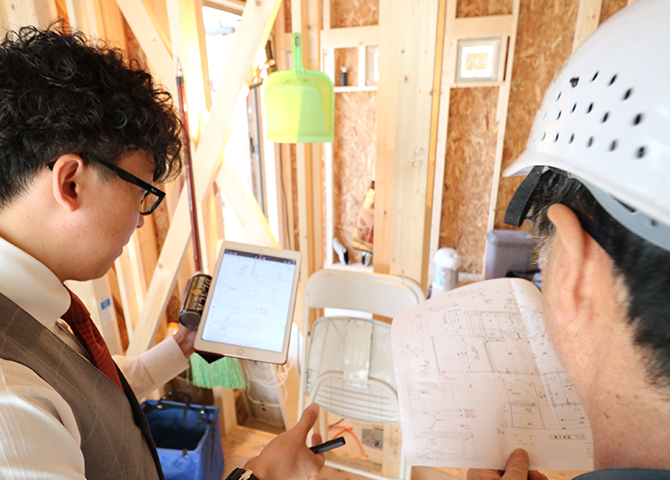 お客様の理想の住まいを、安全かつ高品質に完成させるために設計図通りに工事が進むように、スケジュール、品質、安全、コストを徹底的に管理し、チーム全体をまとめ上げます。